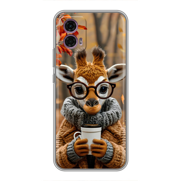 Выбирайте свое настроение: Белка с кофе, Грызунчик с кофе, Жираф с кофе, Зайчик с кофе, Медвежонок с кофе, Мышка с кофе, Пёсик с кофе, Тигр с кофе — каждый герой выглядит стильно и мило на вашем Motorola Moto G35.