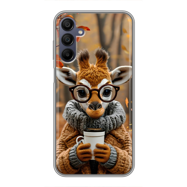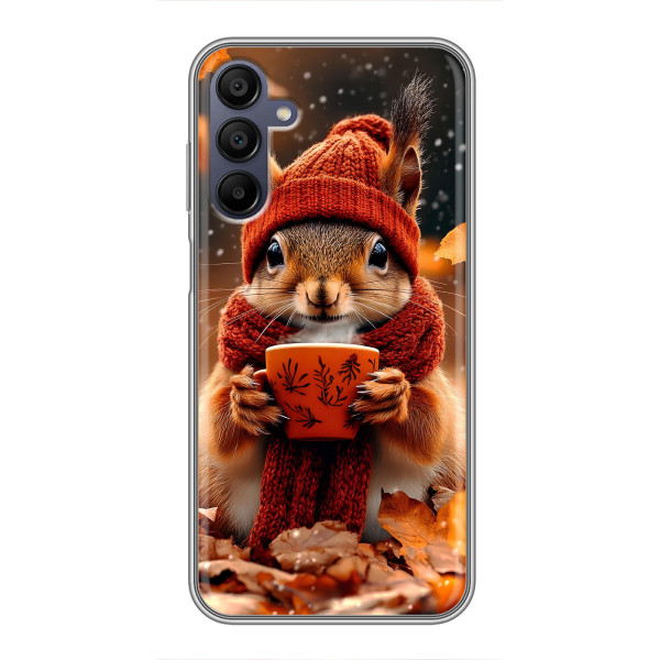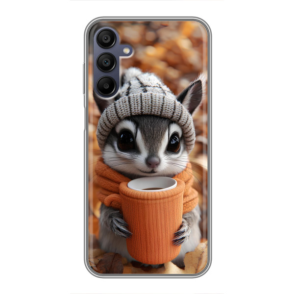 Выбирайте свое настроение: Белка с кофе, Грызунчик с кофе, Жираф с кофе, Зайчик с кофе, Медвежонок с кофе, Мышка с кофе, Пёсик с кофе, Тигр с кофе — каждый герой выглядит стильно и мило на вашем Samsung Galaxy A15 (A155).