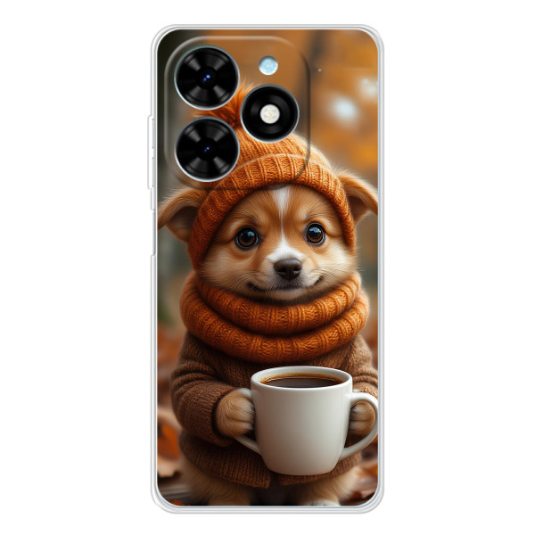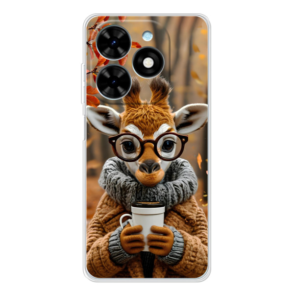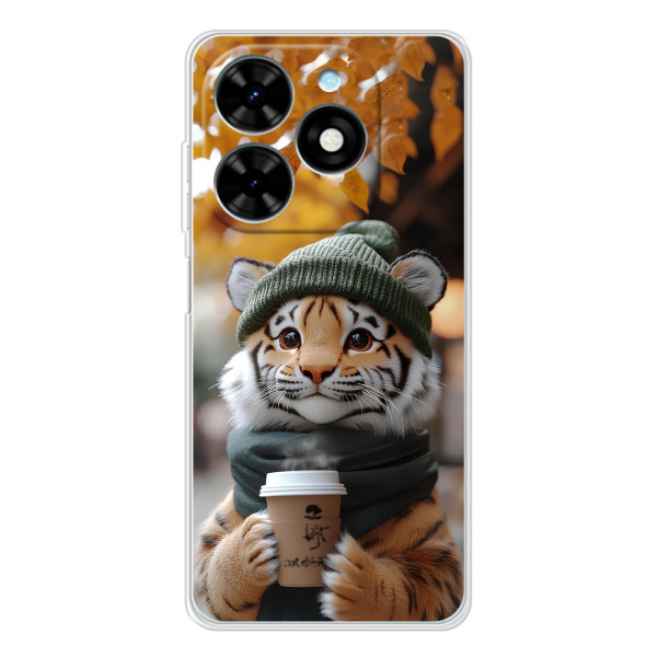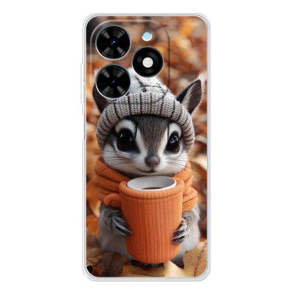 Выбирайте свое настроение: Белка с кофе, Грызунчик с кофе, Жираф с кофе, Зайчик с кофе, Медвежонок с кофе, Мышка с кофе, Пёсик с кофе, Тигр с кофе — каждый герой выглядит стильно и мило на вашем Tecno Spark Go 2025.