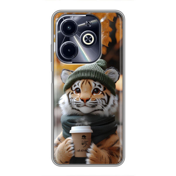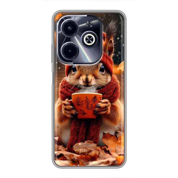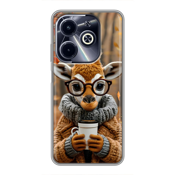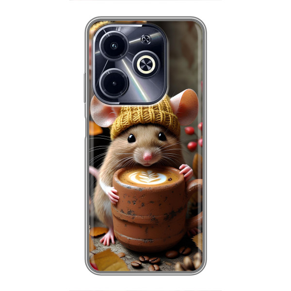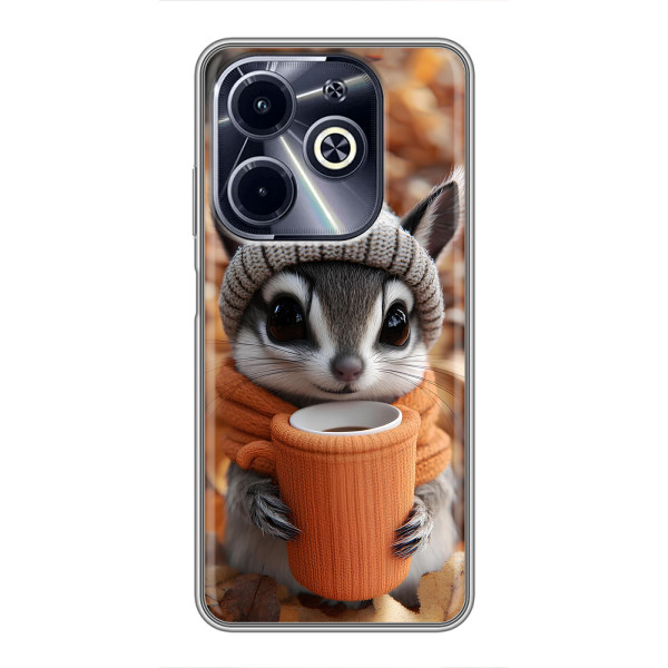 Обирайте свій настрій: Білка з кавою, Гризунчик з кавою, Жираф з кавою, Зайчик з кавою, Мішка з кавою, Мишка з кавою, Песик з кавою, Тигр з кавою — кожен герой виглядає стильно й мило на вашому Infinix Hot 40i