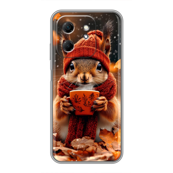 Обирайте свій настрій: Білка з кавою, Гризунчик з кавою, Жираф з кавою, Зайчик з кавою, Мішка з кавою, Мишка з кавою, Песик з кавою, Тигр з кавою — кожен герой виглядає стильно й мило на вашому Infinix Hot 50i