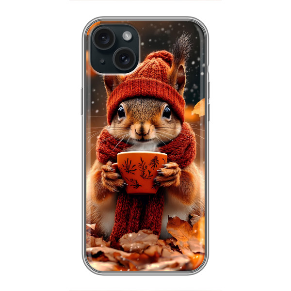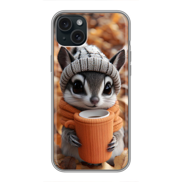 Обирайте свій настрій: Білка з кавою, Гризунчик з кавою, Жираф з кавою, Зайчик з кавою, Мішка з кавою, Мишка з кавою, Песик з кавою, Тигр з кавою — кожен герой виглядає стильно й мило на вашому iPhone 15 Plus