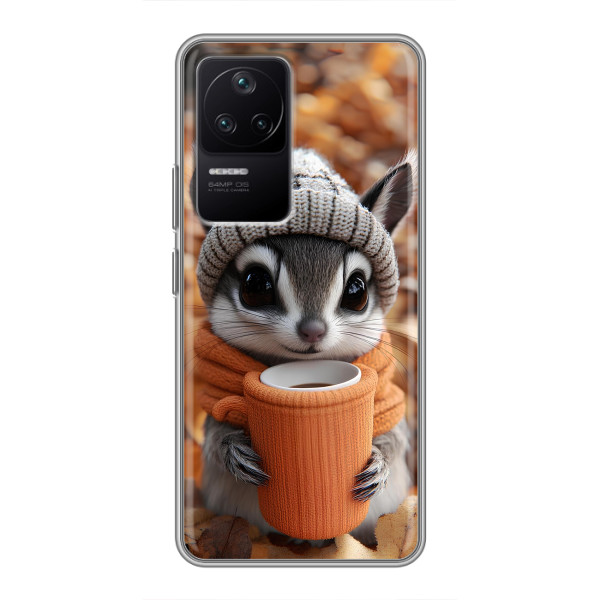 Выбирайте свое настроение: Белка с кофе, Грызунчик с кофе, Жираф с кофе, Зайчик с кофе, Медвежонок с кофе, Мышка с кофе, Пёсик с кофе, Тигр с кофе — каждый герой выглядит стильно и мило на вашем Xiaomi POCO F4 (5G).