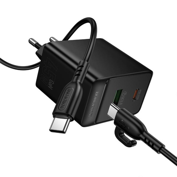 СЗУ Borofone BAS16A Erudite PD45W+QC3.0 (1USB-A/1C) + кабель Type-C to Type-C